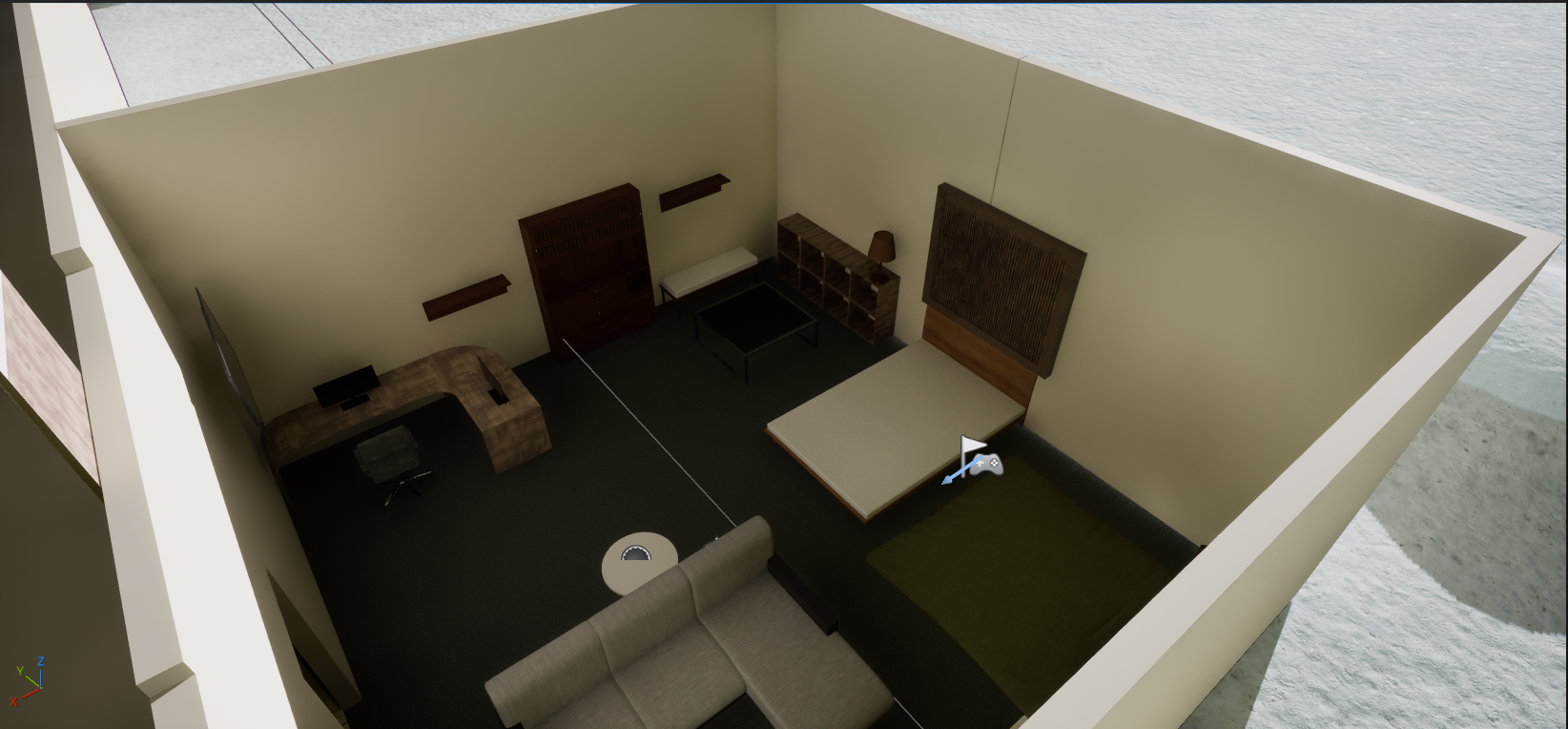 For personality and originality the main thing i want to highlight is the idea of the game itself. In this game you are a kid trying to sneak into your dads office. while trying to avoid him at all costs. To help drive in the fact that you are a kid, I made everything in the house bigger than they normally would be. this helped create the illusion of you being small. I also purposefully did not decorate the office. I think this helps bring in a kids train of thought. Most kids want to do this like and adult does but when they finally get to do it they realize how boring it really is. I feel is show this with a super bland office space, the space you spend the whole game trying to get to.